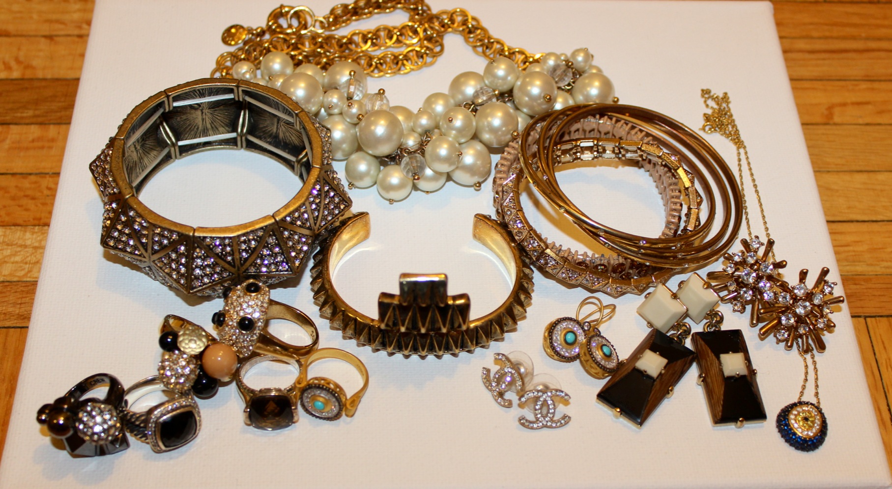Left to right: A pair of earrings from Istanbul, Turkey (a lovely gift I received!), Marc Jacobs, Chanel, J.Crew