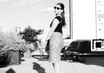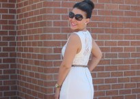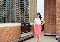Skirt: J.Crew (old), Shoes: Zara, Shirt: Bailey44, Jewelry: Ring (Middle) J.Crew, Other Rings: Ariella Collection, Earrings: Marc Jacobs, Clutch: YSL, Sunglasses: Ray-Ban