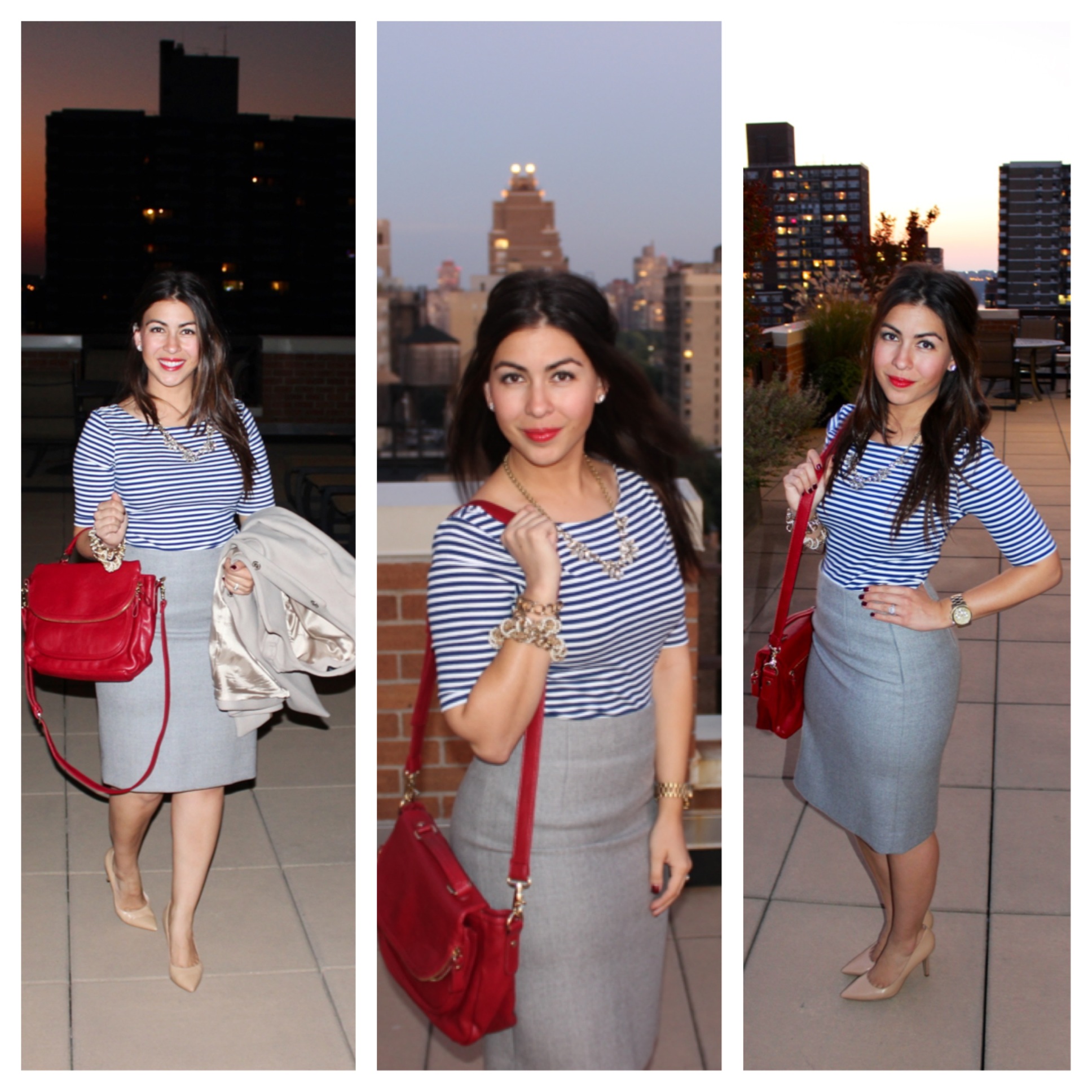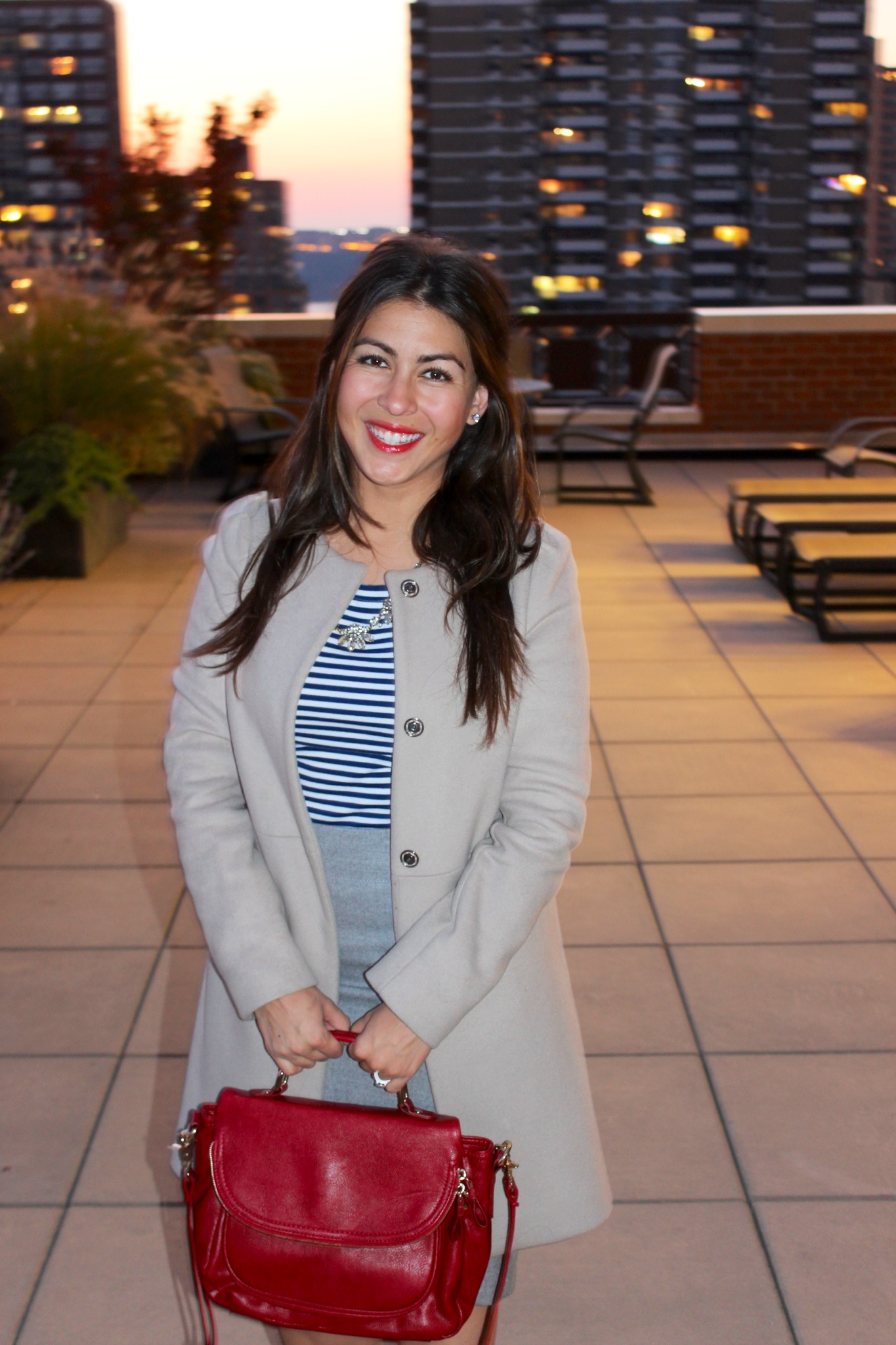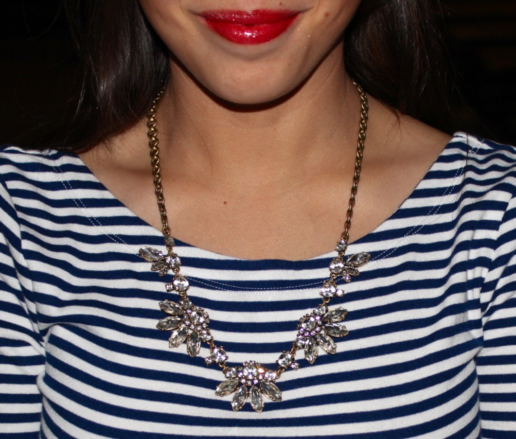 Shirt: Banana Republic, Bag: Forever21, Skirt: J.Crew, Necklace: J.Crew, Shoes: Nine West, Coat: Zara, Bracelet: Forever21 Necklace (wrapped around wrist)